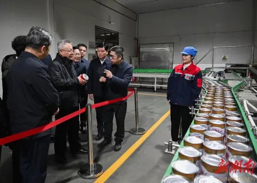 隨后,沈曉明書記察看了辣妹子辣椒醬、水果罐頭等食品自動化生產線,了解辣椒原料供應和深加工、市場拓展等情況,同時叮囑辣妹子嚴格落實食品安全主體責任,不斷提高自動化生產水平,進一步推動擴產擴銷,充分發揮辣妹子龍頭企業作用,帶動更多農業生產企業共享銷售渠道,帶動更多湖南農特產品走向全國。